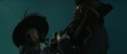 In der Nacht wird Sao Feng allerdings bei einem Angriff der Flying Dutchman, Davy Jones’ Schiff, getötet. Vor seinem Tode ernennt er Elizabeth zum Captain und seiner Nachfolgerin als Piratenfürst. Kurz darauf wird die Crew auf der Flying Dutchman festgesetzt, wo Elizabeth auf Norrington trifft, den sie aus vergangenen Tagen kennt. Norrington befreit Elizabeth und ihre Crew und verhilft ihr zur Flucht auf das im Schlepptau befindliche Schiff. Dabei wird er von Stiefelriemen-Bill, Wills Vater, getötet, dessen Persönlichkeit allmählich schwindet.