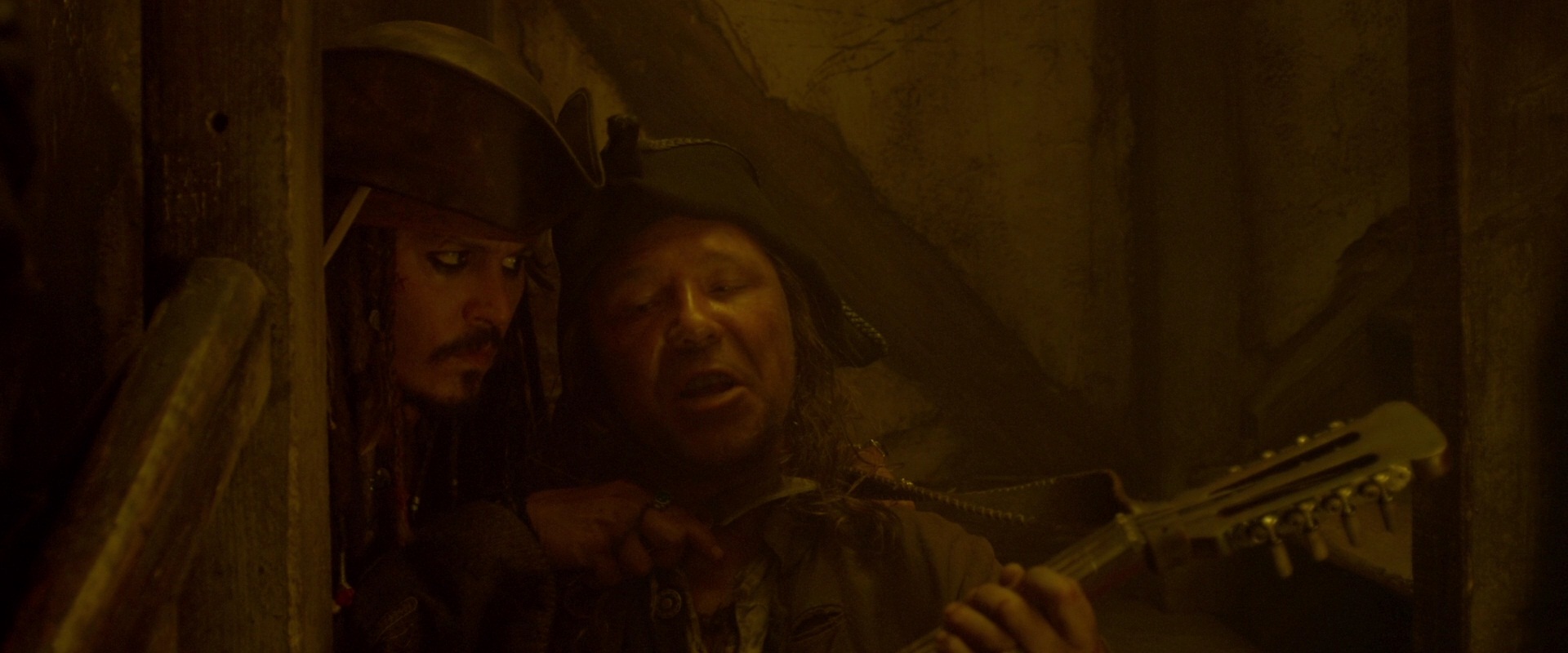 Er ist wohl auch dabei behilflich, den vom Quartiermeister mit einem vergifteten Pfeil außer Gefecht gesetzten Jack Sparrow auf die Queen Anne's Revenge zu schanghaien. Eine gute Meinung hat er von dem Schiff nicht, nennt es "Gefährt der Schändlichkeit". Er ist es auch, der Jack über seinen Aufenthaltsort informiert. An der von Jack Sparrow initiierten Meuterei gegen Blackbeard nimmt er mit beängstigender Begeisterung teil. Dieser vereitelt aber den Plan.