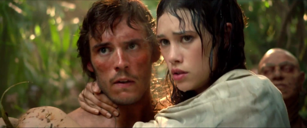 Weil die Tränen einer Meerjungfrau nicht lange haltbar sind, wird Syrena von vier Mann der Crew durch den Dschungel der Quellinsel in einem wassergefüllten gläsernen Aquarium getragen, bis einer von ihnen stürzt und das Aquarium dabei zu Bruch geht. Nachdem sie auf dem Trockenen ist, verwandelt sich ihre Fischhälfte in menschliche Beine, aber Syrena hat nie gelernt, auf zwei Beinen zu gehen. Philip Swift erweist sich als Gentleman, der ihr sein buchstäblich letztes weil einziges Hemd gibt, damit sie nicht nackt ist und sie im Wortsinne auf Händen trägt, obwohl sie sich dagegen zunächst sträubt.