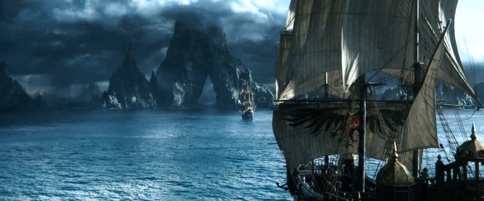 Einige Zeit später bemerken Salazar und seine Männer, dass sich die Wolken, die das Dreieck ständig in tiefem Schatten halten, plötzlich auflösen und Sonnenschein die dünner werdenden Wolken durchdringt. Das Steuerrad der Silent Mary dreht sich selbsttätig in Richtung Felsentor, das Tor selbst zerbröckelt. Nach kurzer Zeit sind alle Felsen verschwunden, die Silent Mary schwimmt in offener See unter makellos blauem Himmel. Jack Sparrow hat seinen Kompass verkauft und damit den Zauber gebrochen, der das Dreieck erhalten hat. Das Teufelsdreieck ist aufgelöst.
